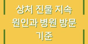 상처를 입었을 때 자연스럽게 발생하는 진물은 상처의 치유 과정을 돕는 중요한 역할을 합니다. 그러나 상처에서 진물이 계속 나오는 경우, 이는 여러 가지 원인에 의해 발생할 수 있으며, 개인의 건강 상태에 …