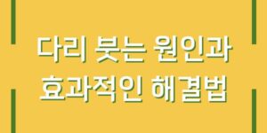 다리가 붓는 문제는 많은 분들이 겪는 흔한 증상입니다. 특히, 하루 종일 서 있거나 앉아 있는 직업을 가진 분들, 또는 운동 부족으로 인해 혈액 순환이 원활하지 않은 분들에게 더욱 두드러지는 현상입니다. …