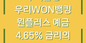 우리은행의 원플러스 예금은 현재 4.65%의 매력적인 금리를 제공하며, 많은 금융 소비자들에게 주목받고 있습니다. 이번 글에서는 이 상품의 특징, 가입 방법, 그리고 이자 계산 방법 등을 자세히 살펴보도록 하겠습니다. 우리은행 원플러스 …