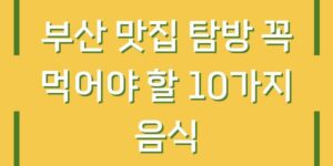 부산은 대한민국 제2의 도시로서, 아름다운 해변과 함께 다채로운 먹거리를 자랑합니다. 특히 부산의 음식은 지역 특색을 잘 살리고 있어 여행객뿐만 아니라 현지인들에게도 큰 사랑을 받고 있습니다. 이번 포스팅에서는 부산에서 반드시 맛봐야 …