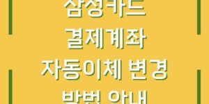 삼성카드를 이용하시는 고객님들께서는 카드 결제 계좌를 변경해야 할 필요가 있을 수 있습니다. 이 글에서는 삼성카드의 결제계좌 자동이체를 변경하는 방법에 대해 자세히 안내드리겠습니다. 자동이체 변경은 카드 이용의 편리함을 증대시키고, 원활한 결제 …