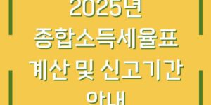 2025년의 종합소득세 신고를 준비하는 데 필요한 정보와 계산 방법을 안내드리겠습니다. 종합소득세는 개인의 소득을 종합하여 부과되는 세금으로, 정확한 신고와 납부가 필요합니다. 본 글에서는 2025년 종합소득세율표, 신고 방법, 신고 기간, 그리고 관련된 …