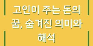 꿈은 우리의 무의식이 표현되는 공간이며, 각 꿈은 그 자체로 특별한 의미를 지니고 있습니다. 특히 고인이 돈을 주는 꿈은 그 의미가 다양하게 해석될 수 있습니다. 이번 글에서는 고인이 돈을 주는 꿈의 …