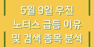 최근 주식 시장에서 ‘노터스’와 ‘우진’ 주식이 급등세를 보였습니다. 특히 5월 9일에는 두 종목 모두 투자자들 사이에서 큰 관심을 받으며 검색량이 급증하는 모습을 보였습니다. 이번 글에서는 노터스와 우진의 급등 이유를 살펴보고, …