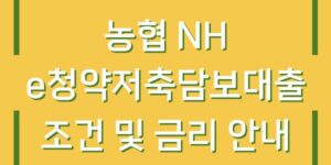 농협 NH e청약저축담보대출은 주택 구매를 위한 자금을 마련하는 데 유용한 금융 상품으로, 많은 고객들이 관심을 가지고 있는 대출 옵션입니다. 본 글에서는 NH e청약저축담보대출의 자격 조건, 금리, 한도, 신청 방법 및 …