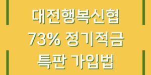 대전행복신협의 73% 정기적금 특판은 최근 많은 이들의 관심을 받으며 주목받고 있는 금융 상품입니다. 이 상품은 놀라운 7.3%의 금리를 제공하여, 저축을 통해 안정적인 재정 관리와 더불어 높은 수익을 기대할 수 있도록 …