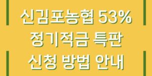 신김포농협에서 제공하는 53% 정기적금 특판은 고금리를 통해 많은 분들이 관심을 가지고 있는 상품입니다. 이 글에서는 신김포농협의 정기적금 특판에 대한 신청 방법, 가입 절차, 그리고 기타 유의사항에 대해 상세히 안내드리겠습니다. 신김포농협 …