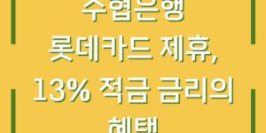 최근 금융 시장에서 수협은행과 롯데카드 간의 제휴가 화제를 모으고 있습니다. 이 제휴를 통해 제공되는 ‘Sh플러스알파적금(with 롯데카드)’는 최대 연 13%의 높은 금리를 제공하여 저축을 원하는 고객들에게 큰 관심을 받고 있습니다. 이번 …