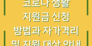 코로나19로 인해 많은 분들이 어려움을 겪고 있는 가운데, 정부에서는 코로나 생활 지원금을 통해 경제적 부담을 덜어주고자 다양한 지원 프로그램을 운영하고 있습니다. 이번 글에서는 코로나 생활 지원금의 신청 방법, 자가격리 대상, …