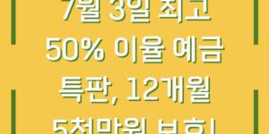 7월 3일 최고 50% 이율 예금 특판, 12개월 5천만원 보호!