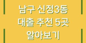 대출은 많은 분들이 생활 속에서 필요로 하는 금융 서비스 중 하나입니다. 특히, 주택 구매, 차량 구입, 학자금 대출 등 다양한 이유로 대출을 고려하게 되는데요. 남구 신정3동 지역에서도 많은 금융 기관들이 …
