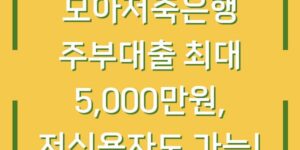 주부들이 가계를 책임지면서도 경제적으로 독립할 수 있도록 도와주는 대출 상품이 있습니다. 바로 모아저축은행의 주부대출입니다. 이 대출 상품은 최대 5,000만원의 대출 한도와 최장 84개월의 대출 기간을 제공하여, 필요한 자금을 유연하게 활용할 …