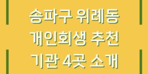 송파구 위례동은 재정적으로 어려움을 겪고 있는 많은 주민들에게 개인회생을 통한 새로운 시작을 지원하는 다양한 법률 상담소가 존재합니다. 이 글에서는 송파구 위례동에 위치한 개인회생 상담소 4곳을 추천하며, 각 기관의 특징과 제공하는 …