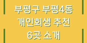 부평구 부평4동에서 개인회생을 고려하고 계신 분들을 위해, 신뢰할 수 있는 법률 서비스 제공 기관 6곳을 추천드립니다. 개인회생은 경제적 어려움을 겪고 있는 개인이 법적 절차를 통해 채무를 조정하고 재정적 안정을 되찾는 …