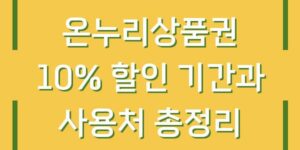 온누리상품권은 전통시장을 비롯한 다양한 상점에서 사용할 수 있는 상품권으로, 고객에게는 할인 혜택을 제공하며, 소상공인에게는 매출 증대의 기회를 제공합니다. 최근에는 온누리상품권을 구매하고 사용할 때 10% 할인 혜택이 제공되는 이벤트가 진행되고 있습니다. …