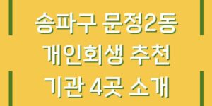 서울 송파구 문정2동은 개인회생을 통한 경제적 재건을 원하는 많은 주민들에게 중요한 법률 서비스를 제공하는 지역입니다. 개인회생은 부채로 어려움을 겪고 있는 개인들이 법원의 도움을 받아 재정적인 위기를 극복할 수 있도록 돕는 …