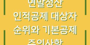 연말정산 시즌이 다가오면 많은 근로자들이 세금 환급을 기대하며 인적공제에 대한 정보를 찾습니다. 인적공제는 세금 부담을 낮추는 중요한 요소이므로, 이를 정확히 알아보고 활용하는 것이 필요합니다. 이번 글에서는 연말정산 인적공제의 대상자 우선순위 …